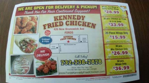 View the menu for Kennedy Fried Chicken and restaurants in Paterson NJ. 2 Pcs Chicken and 1 Roll 399. For more info about your food costs check the menu of the Kennedy Fried Chicken Pizza near.